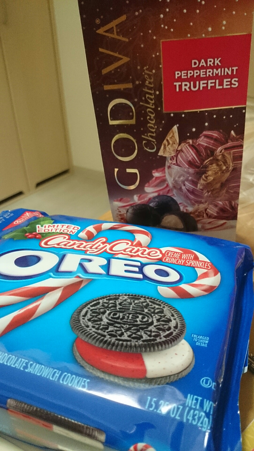 オレオのミント味、何故か色が赤いのが衝撃でした。